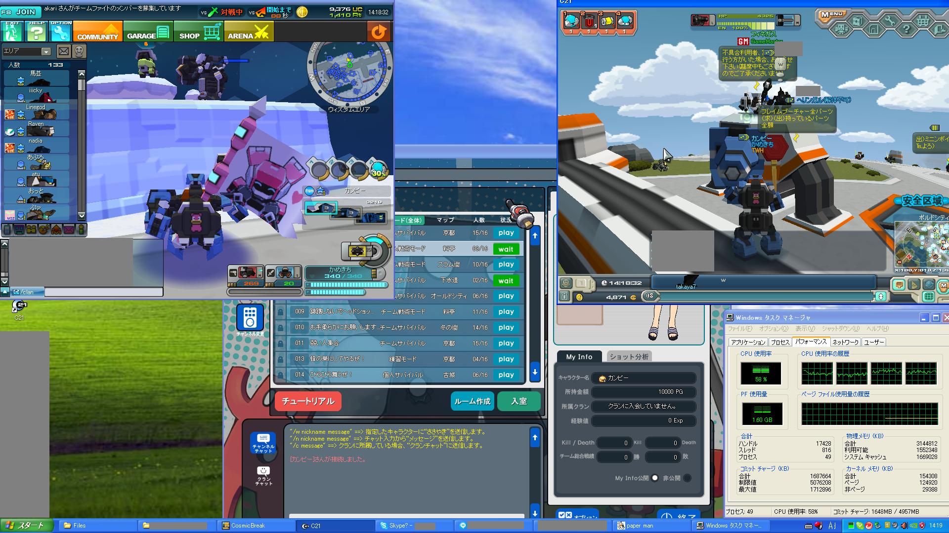 そして試しに3つオンゲ起動してみた(CBとC21とペーパーマン