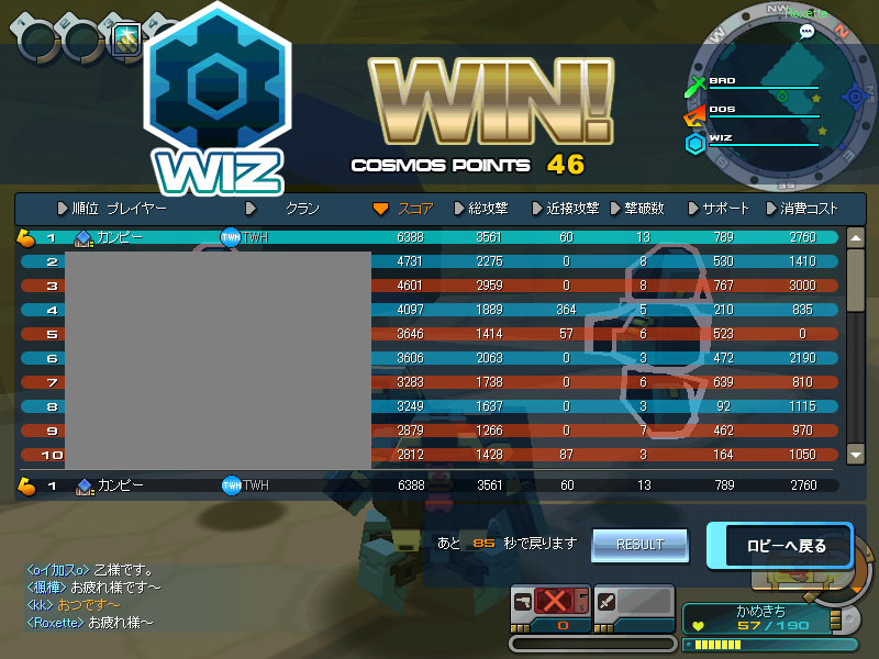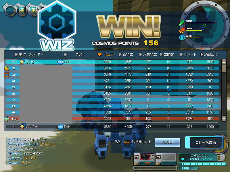 そしてWIZが弱い(一番行きやすいので初心者が多いからだと思うのでいずれは強くなるかな?