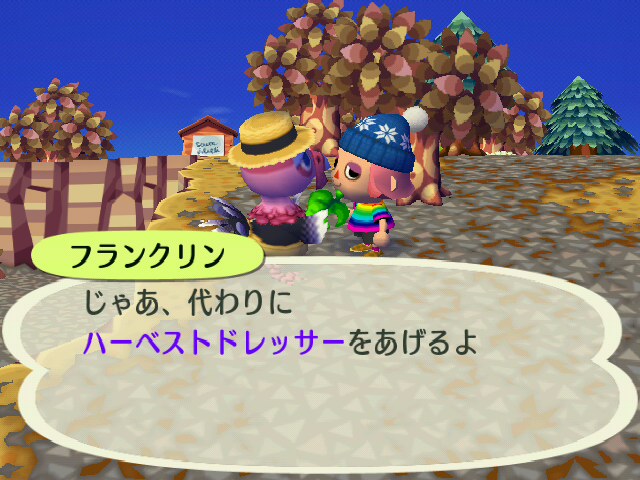 ナイフとフォークを渡すと期間限定アイテム(3333ベルで売れる)を無限にくれるので・・