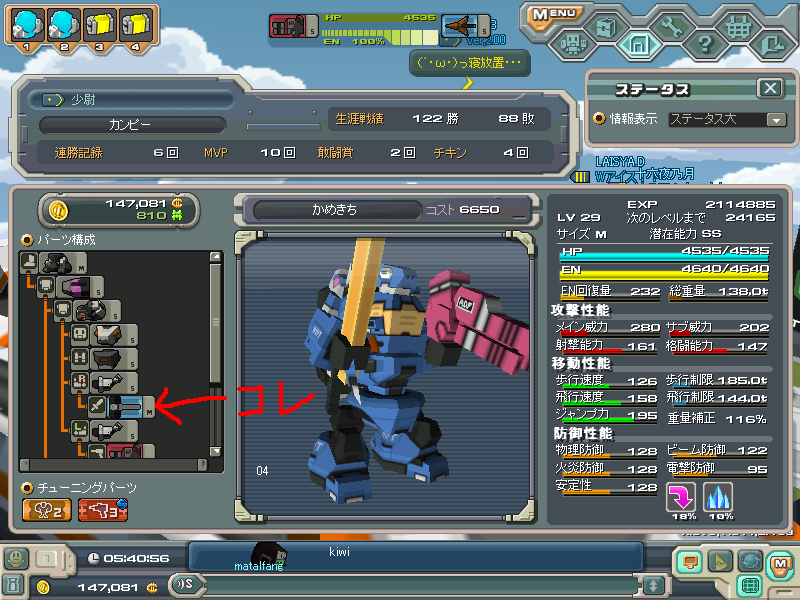 で、コイツからいろんな新パーツがドロップします